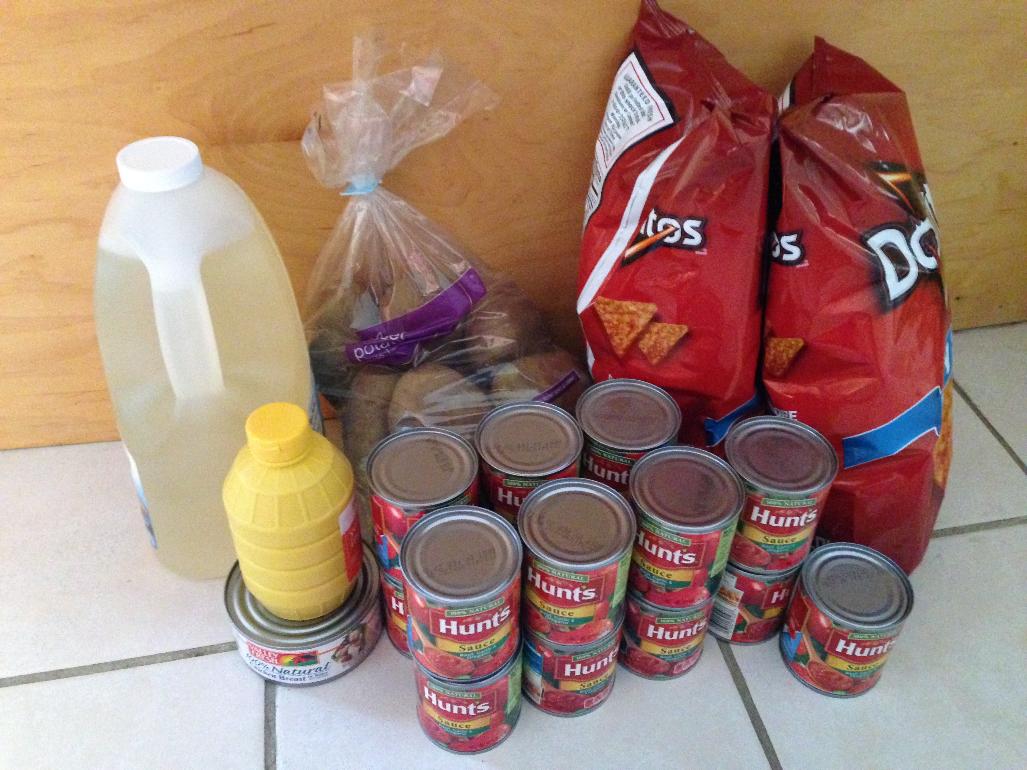The second time through I got yet another bag of potatoes. To use the coupon for it and the oil I needed to spend $25 after coupons so I stopped scanning at just over $27. Once again the oil and potatoes were the great deal this week. The tomato sauce sale is ending so I stocked up on that too. It’s regularly $1.19 each, but is on sale 3/$1 which is the lowest it ever gets.