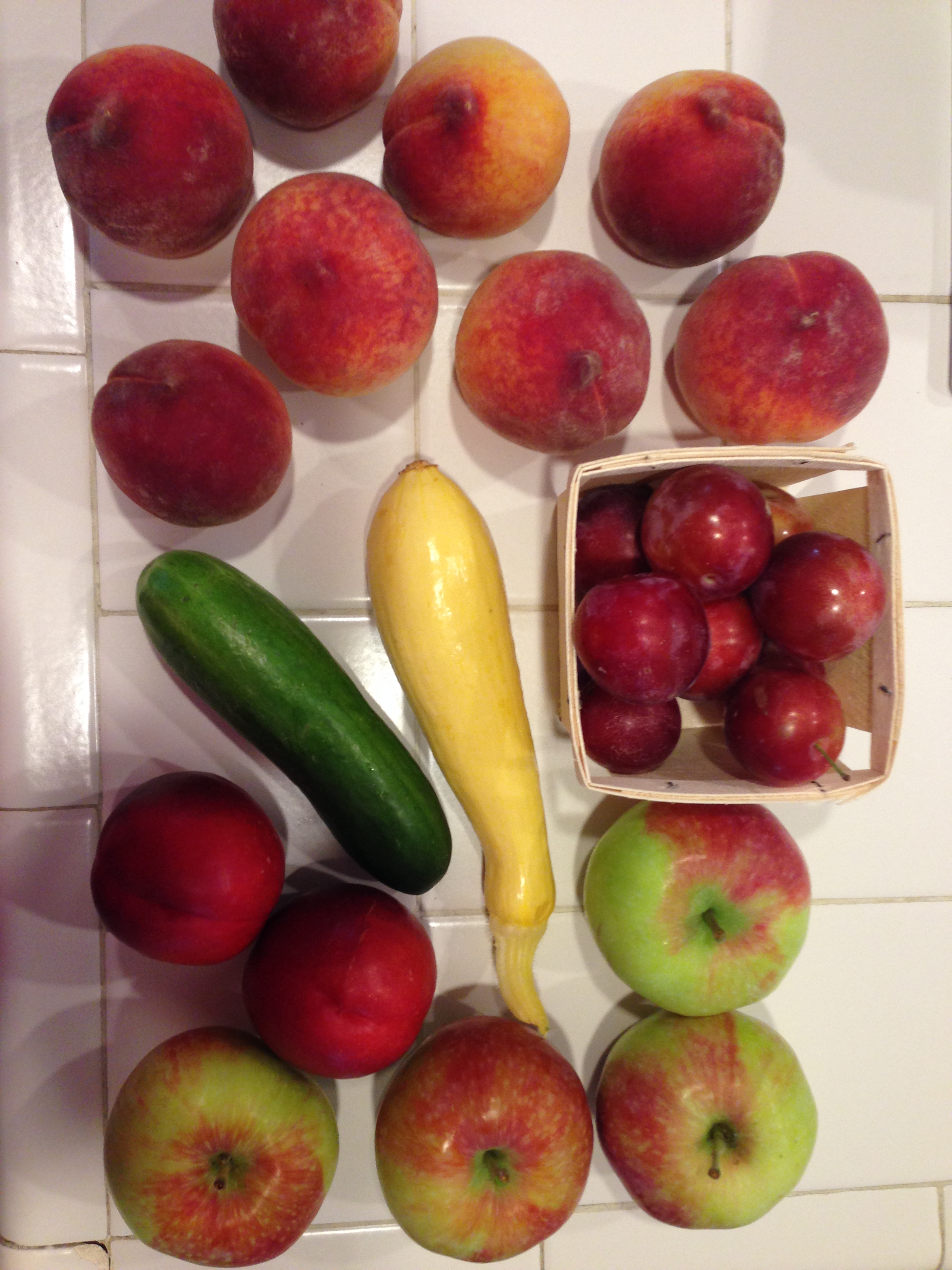 I went to both the farm stand and farmer’s market on Tuesday. All of this produce is local (I’m not sure why the tomatoes came wrapped up.).